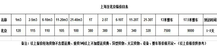 上海到北京物流